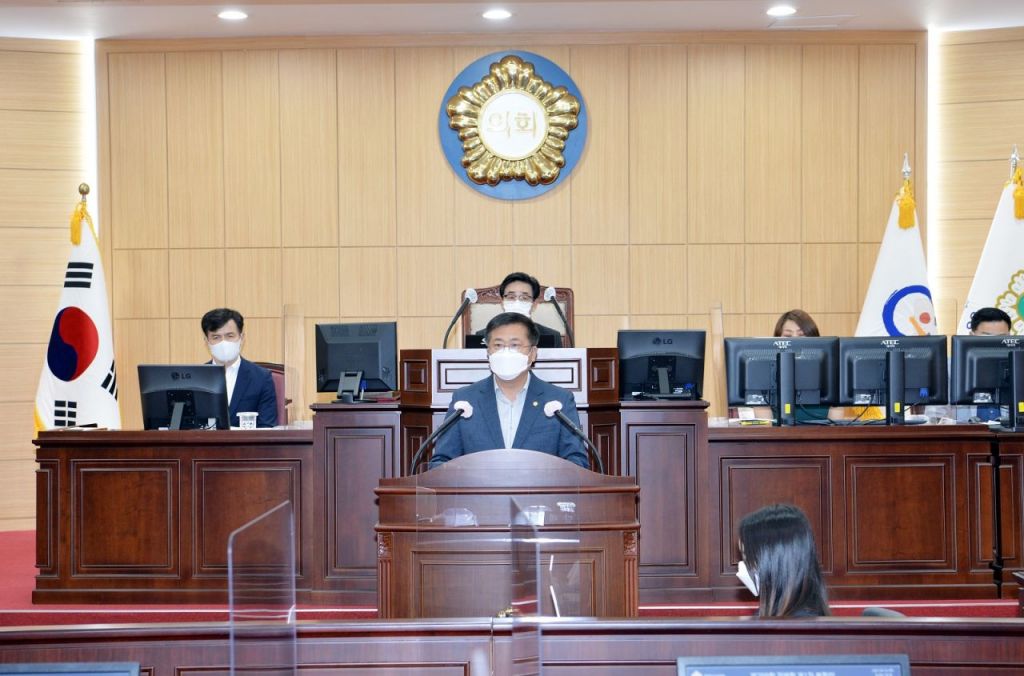 진수화 의장은 개회사를 통해 ‘올 초부터 재난지원금 지급은 집행기관으로 부터 논의가 있었으나, 시장 부재로 재난지원금과 4월 예정이었던 제1회 추가경정예산안이 지금까지 미뤄지고 있다’며 ‘최종 결정권자 부재 시에도 주요 현안 업무가 흔들림 없이 처리될 수 있는 행정시스템 구축과 업무공백으로 인한 시민불편이 없도록 부시장을 중심으로 하여 행정력을 집중할 것’을 당부했다.