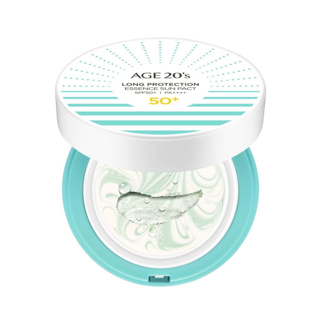AGE 20’s 롱 프로텍션 에센스 선 팩트는 미백, 주름개선, 자외선 차단(SPF50+ /PA++++)에 효과가 있는 3중 기능성 화장품으로 백탁현상이 적은 유기자차와 피부 자극이 적은 무기자차 자외선 차단제의 장점을 담은 혼합자차 선 팩트이다. 피부에 걱정되는 10가지 성분을 함유하지 않았으며 민감성피부자극시험을 완료해 민감한 피부도 사용 가능하다.