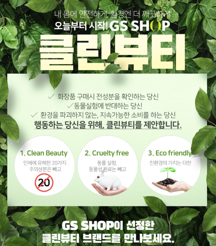 [아시아경제 김유리 기자] GS샵은 모바일 애플리케이션에 '클린뷰티관' 기획전을 열고 다양한 친환경 화장품을 판매한다고 15일 밝혔다.