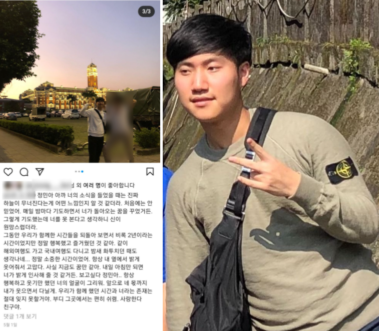 그런가 하면 손씨는 정민씨 친구들이 인스타그램에 남긴 추모글 일부를 소개하기도 했다.
