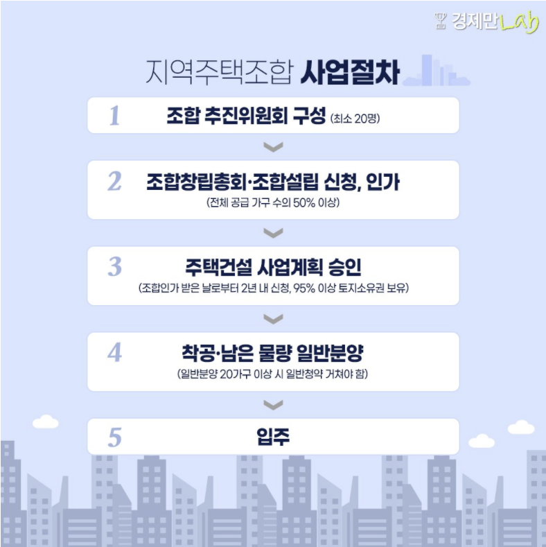 지주택 사업은 해당 지역에서 6개월 이상 일정 지역에 거주한 무주택자나 소형주택(85㎡ 이하) 1주택자들이 조합을 결성해 주택을 짓는 사업이다. 조합이 직접 시행사 역할을 해 직접 자금을 모아 땅을 산 후, 시공사 선정을 거쳐 아파트를 건축하기 때문에 분양가도 저렴하다. 임대주택 의무 비율도 없다. 청약통장 없이도 조합원 가입이 가능하다.
