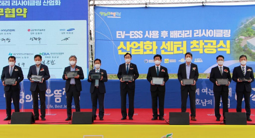 착공식과 함께 전남도, 나주시, 한국전지산업협회, 현대자동차 등 참여기업은 ‘사용 후 배터리 재사용 산업 육성과 자원순환경제 확산을 위한 업무협약’을 체결했다.