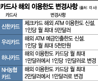 업계 관계자는 "최근 해외에서 ATM 예금 인출이 급격하게 증가하면서 카드사들도 리스크 관리 차원에서 규정을 강화하고 있는 것"이라고 설명했다.