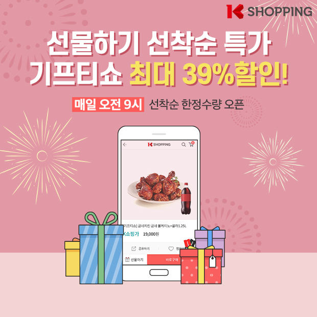 K쇼핑은 오는 30일까지 매일 아침 9시에 인기 기프티쇼를 한정수량으로 최대 39% 할인된 가격에 판매한다.