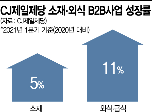 식품업계에 따르면 국내 B2B 가공식품시장은 올해 34조원 규모에서 2025년에는 50조원 이상으로 확대될 것으로 전망된다. 특히 외식 시장의 성장세가 두드러진다. 외식 B2B시장 규모는 2017년부터 연평균 22.1%의 성장률을 보이고 있다. CJ제일제당의 경우, 올 1분기 소재 분야 B2B 사업 매출은 5% 증가한 데 비해 급식 외식 등 식품 매출액은 11% 성장했다. 신세계푸드 센트럴 키친 사업규모도 2015년 1800t 수준에서 지난해 1만t으로 늘었다. 센트럴 키친 전문 브랜드 쉐프초이스의 매출액도 최근 3년간 257%나 늘었다.