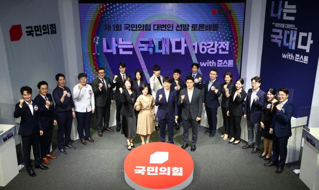 27일 국민의힘 대변인단을 선정하는 토론배틀 '나는 국대다' 16강전 결과 김민규(2003년생)·김연주(1966년생)·민성훈(1987년생)·신인규(1986년생)·양준우(1995년생)·임승호(1994년생)·황규환(1981년생)·황인찬(1997년생)씨가 8강에 올랐다.