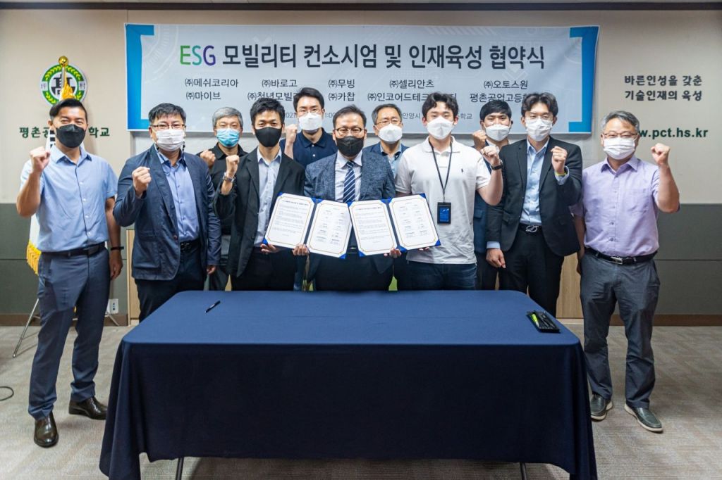 ESG모빌리티 컨소시엄은 안정적인 청년정책 추진을 위한 기반 조성과 친환경 e-모빌리티 보급을 실현하기 위해 플랫폼 서비스기업, e-모빌리티 제조기업, 지역거점 운영기업 등이 함께한다. 메쉬코리아는 이날 열린 컨소시엄 발대식에서 참여 기업들과 함께 e-모빌리티 보급 및 인재육성을 위한 상호 간 협약식을 진행했다.