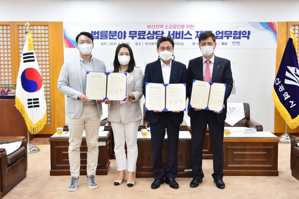 지난 29일 부산시에서 소상공인 ‘법률분야 무료상담 서비스 제공 업무협약’이 체결됐다.