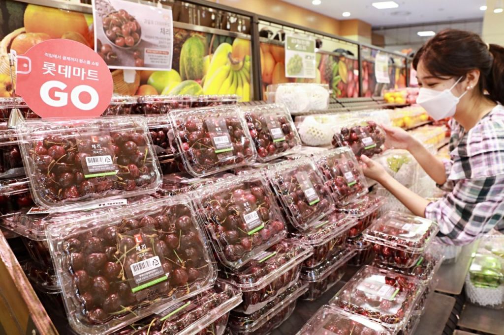 롯데마트에서 고객이 '롯데마트고(GO)' 행사 상품을 살펴보고 있다(사진제공=롯데마트).