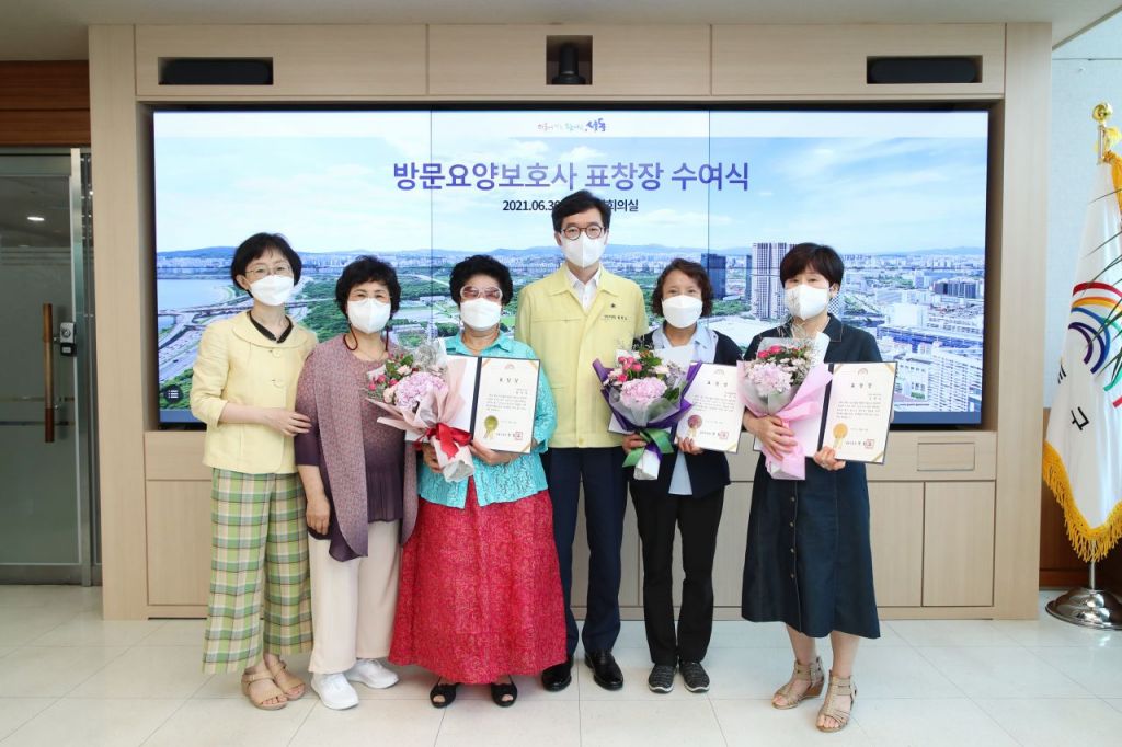 [아시아경제 박종일 기자] 성동구(구청장 정원오)는 제13회 요양보호사의 날을 맞아 지난 달 30일 성동구 방문요양보호사 3명에게 구청장 표창을 수여했다.