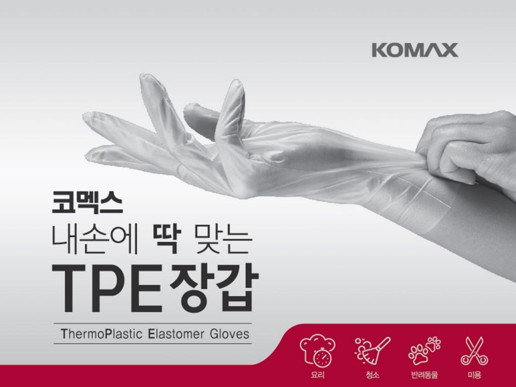 50년 전통의 주방생활용품 기업 ㈜코멕스산업(코멕스)이 '내손에 딱 맞는 TPE장갑'을 5일 출시한다고 밝혔다. 코멕스 내손에 딱 맞는 TPE장갑은 내열성과 내화학성 모두 뛰어난 신소재 TPE(ThermoPlastic Clastomer Gloves)로 만들어졌다. 고무와 플라스틱 두 성질을 갖고 있는 고분자 재료인 TPE는 아이들 장난감에도 사용하는 안전한 소재로 안심하고 사용할 수 있다.