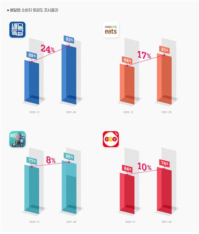앞서 또 다른 분석 업체 글로벌빅데이터연구소 조사에서도 경기도 배달특급은 지난 1~2월 연속 국내 배달앱 6개 중 소비자 호감도 1위를 차지했다.