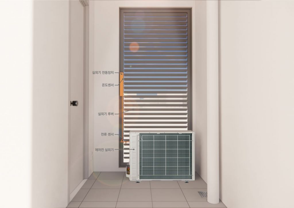 지난 2020년 초부터 한화건설과 ㈜금강시스템하우징은 에어컨 실외기 전동루버시스템의 공동개발에 착수해 올해 초 특허출원을 마쳤다. 실외기 전동루버시스템은 에어컨 작동 시 실외기의 전류를 감응하고 실외기실 루버를 열어 열 배출을 유도하도록 설계됐다. 특히 전류 감응장치가 고장났을 때에도 온도센서가 작동돼 실외기실의 온도가 상승하면 자동으로 루버가 열릴 수 있도록 안전장치까지 갖췄다.