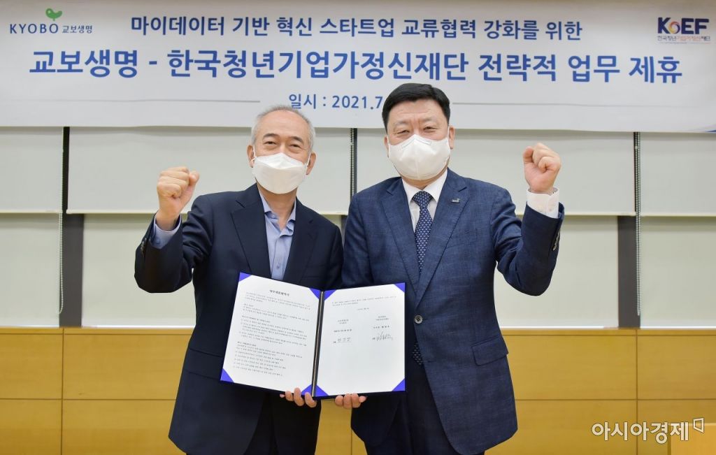 아울러 교보생명은 마이데이터 사업 추진과 혁신 스타트업 육성지원 협력을 위해 한국청년기업가정신재단과 전략적 업무협약(MOU)를 7일 체결했다.