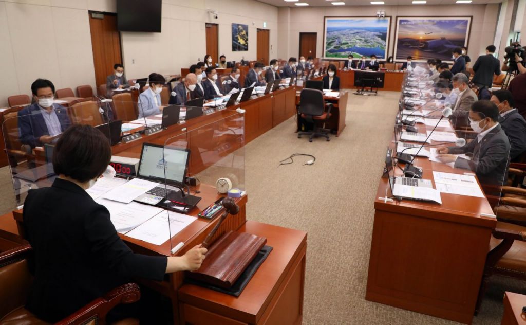 13일 오전 서울 여의도 국회에서 열린 국토교통위 전체회의에서 진선미 위원장이 개의를 알리는 의사봉을 두드리고 있다. [이미지출처=연합뉴스]