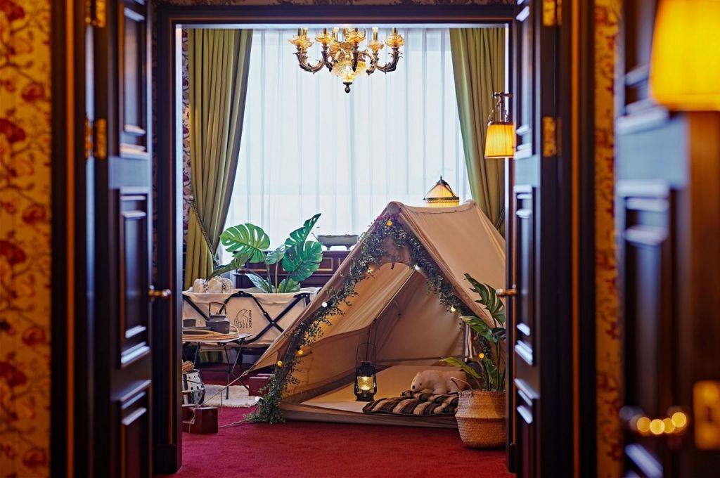 객실 내에는 글램핑 감성을 느낄 수 있도록 북유럽 아웃도어 브랜드 '노르디스크'와 협업해 노르디스크를 대표하는 코튼 텐트인 이든 테크 미니와 라운지 체어, 코튼 캔버스 웨건 등 캠핑 용품이 세팅된다.