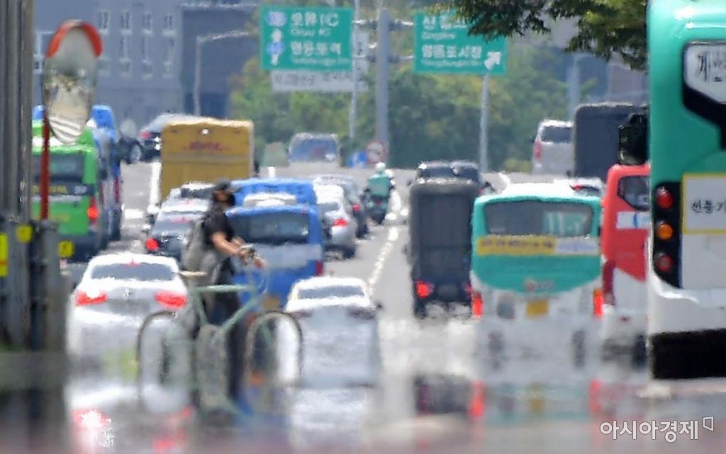 전국 대부분 지역에 폭염특보가 발효된 14일 서울 영등포구 여의대로 위로 지열로 인한 아지랑이가 피어오르고 있다./김현민 기자 kimhyun81@
