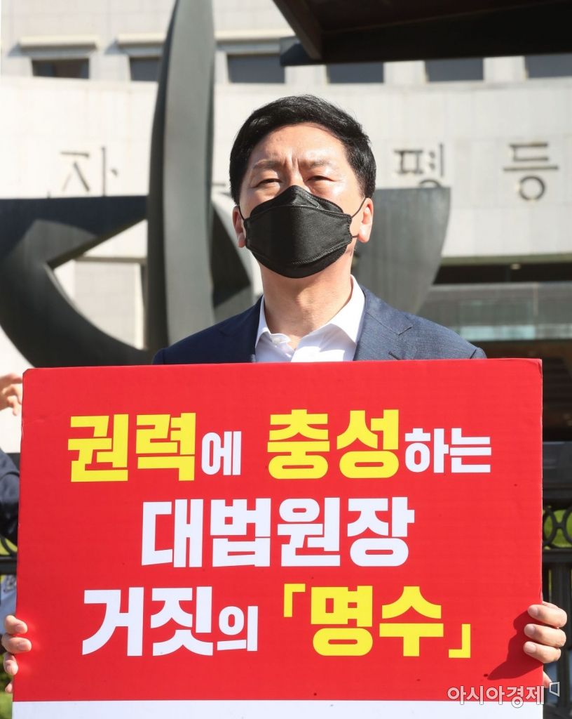 국민의힘은 지난 2월5일 김 원내대표를 시작으로 김 대법원장의 자진 사퇴를 촉구하는 릴레이 시위를 이어왔다. 또 지난 6월 김 대법원장의 비리를 담은 '법치의 몰락, 김명수 대법원장 1352일간의 기록'를 발간하며 사퇴 압박에 총력을 가하기도 했다.