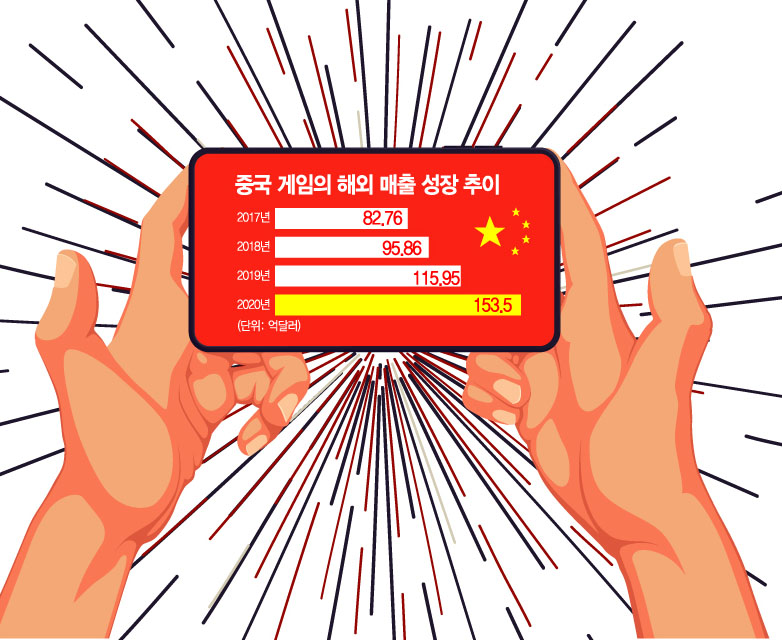반면 중국 게임들은 국내에서 승승장구하고 있다. 데이터 분석기업 아이지에이웍스의 모바일인덱스에 따르면 지난달 국내 모바일 게임 매출 상위 20위권에서 중국산 게임은 35%(7개)에 달했다. ‘2020년 중국 게임산업’ 보고서에 따르면 지난해 중국 게임의 해외 매출은 약 17조5000억원 규모에 달한다. 이 중 한국은 중국 전체 해외 매출 중 3위(8.8%)로, 약 1조5000억원을 한국 게임시장에서 벌어간 것으로 추정된다.
