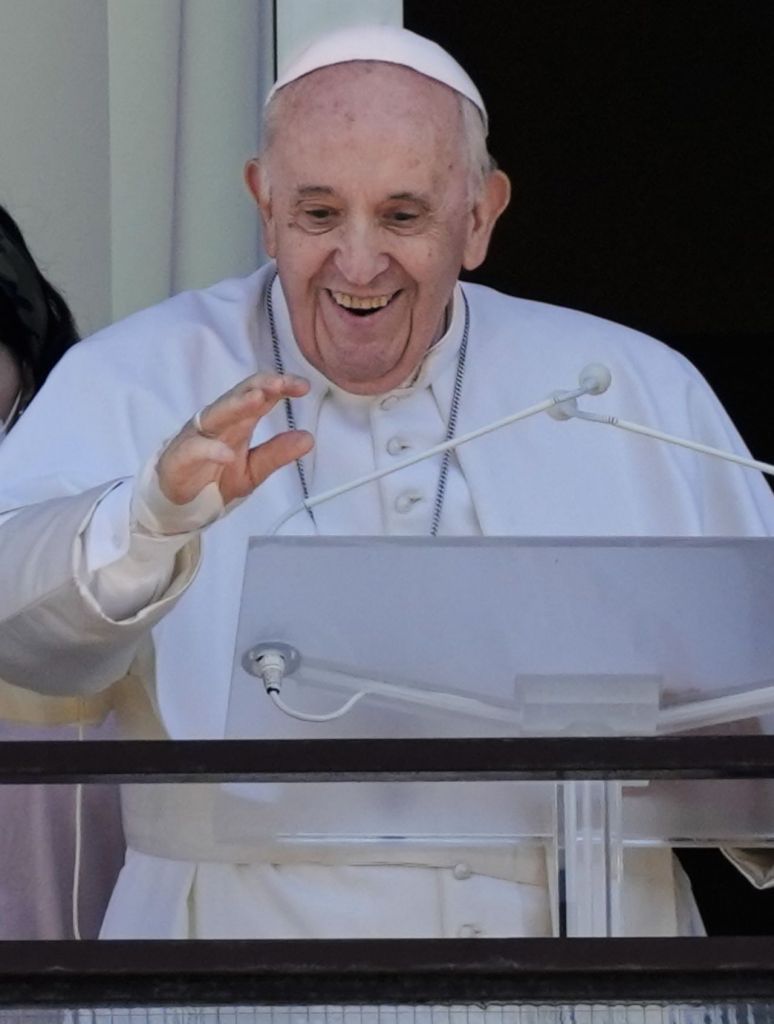 최근 결장 협착증 수술을 받고 회복 중인 프란치스코 교황이 지난 11일(현지시간) 이탈리아 로마 제멜리 종합병원 발코니에 나와 신자들을 향해 환하게 미소 짓고 있다. [이미지출처=AFP연합뉴스]