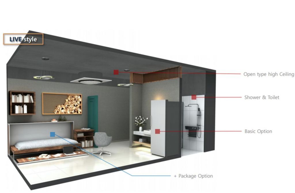이곳은 다양한 타입의 공간 인테리어를 업종 컨셉트에 맞게 적용했다. 과포화 상태인 기존 업무용 오피스텔과 차별화되게 개별 화장실, 샤워부스를 기본 생활형 옵션으로 설치해 생활의 편리함을 끌어올렸다.