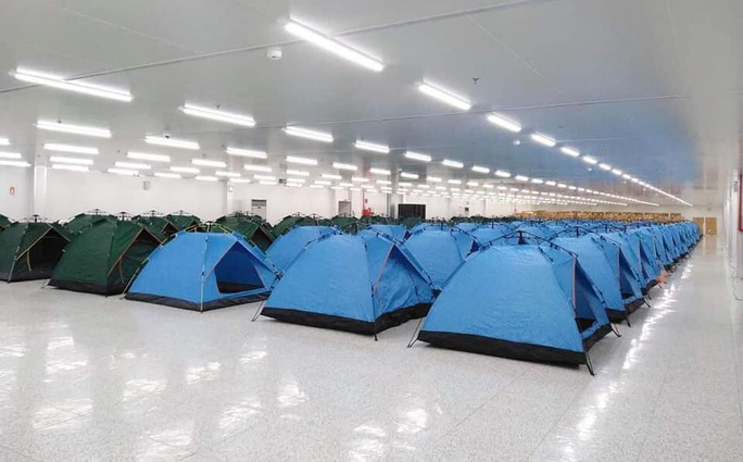 베트남 하노이 근교 박닌성 소재 국내 기업의 공장에 마련된 임시 텐트 숙소. 베트남 정부가 확산 차단 협조를 기업에 요청함에 따라 국내 기업들은 공장 내 임시 숙소를 마련해 제조 라인을 가동하고 있다. 사진 = 독자제공