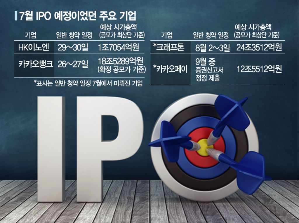 [아시아경제 이민우 기자] 이달 말 기업공개(IPO) ‘대어’들이 몰리며 역대급 공모주 투자 열기가 예상됐지만 주요 기업들이 일정을 미루면서 다소 김이 새는 분위기다. 하지만 최고 기대주였던 카카오뱅크의 기관 수요 예측에 역대급 자금이 몰리면서 다시 흥행 열기를 지피고 있다.