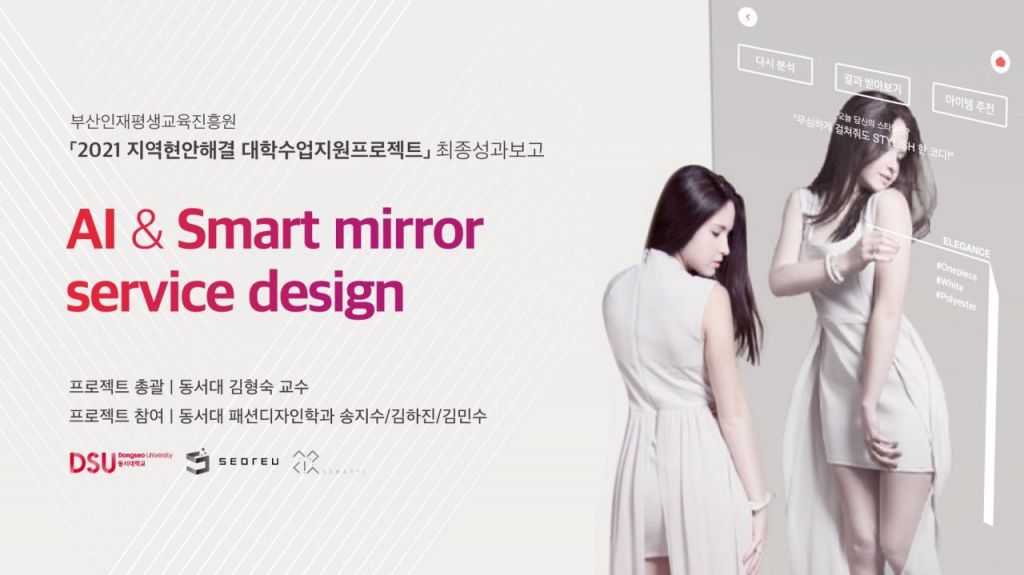 ‘AI기반 패션스마트미러 서비스디자인’은 인공지능 기업과 연계한 산학교과목으로 부산지역 패션 매장의 환경개선과 디지털화를 통해 소상공인을 지원하는 것을 목표로 했다.