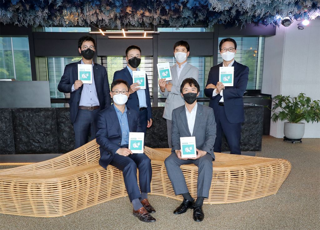 하나은행은 자산관리 부문의 역량 강화를 위해 상속ㆍ증여, 부동산 세금, 가업승계 등 다양한 분야의 축적된 컨설팅 노하우를 담은 '세금·법률 상담 핸드북'을 발간하여 전국 영업점에 배포한다고 밝혔다. 정원기 자산관리사업단 본부장(앞줄 왼쪽에서 첫번째)과 이재철 자산관리사업지원섹션장(뒷줄 왼쪽에서 네번째), 상속증여센터의 세무사들이 하나은행 Club1한남PB센터에서 '세금·법률 상담 핸드북' 발간 기념으로 포즈를 취하고 있다.