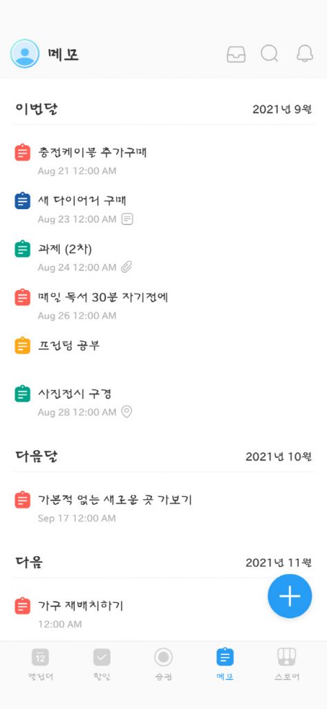 [모리사와코리아 폰트가 적용된 타임블럭스의 메모장]
