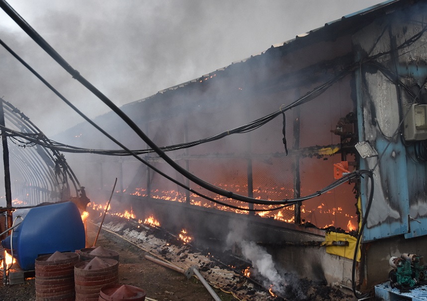지난 6월 공주시 신풍면 소재의 한 양계장에서 전기적 요인에 의한 화재가 발생했다. 충남도 소방본부 제공