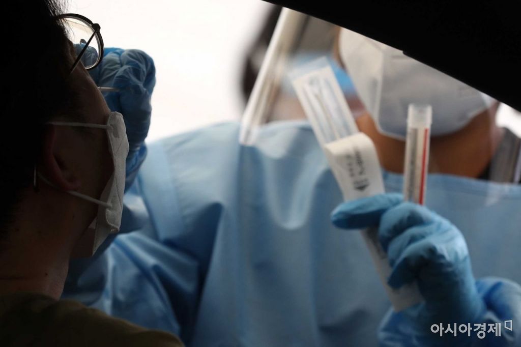 신종 코로나바이러스 감염증(코로나19) 확산세가 이어지고 있는 2일 서울 은평구 서울혁신파크에 마련된 드라이브스루 임시 선별검사소에서 의료진이 검체 채취를 하고 있다. /문호남 기자 munonam@