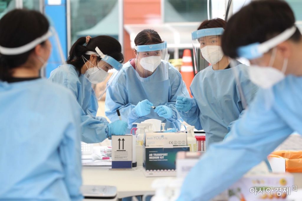 신종 코로나바이러스 감염증(코로나19) 확산세가 이어지고 있는 2일 서울 은평구 서울혁신파크에 마련된 드라이브스루 임시 선별검사소에서 의료진이 분주하게 일하고 있다. /문호남 기자 munonam@
