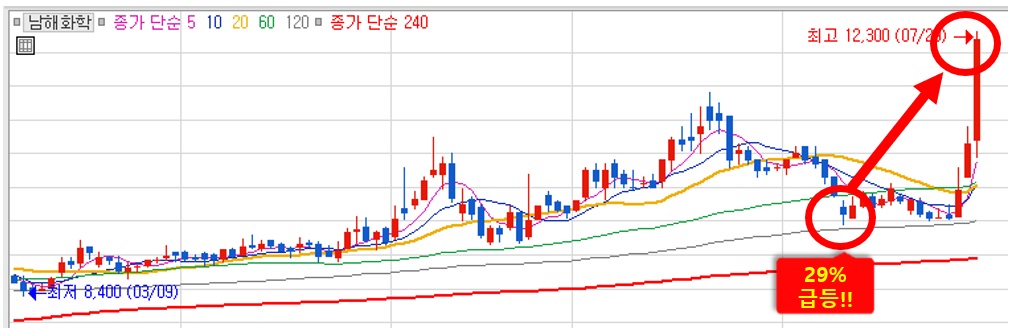 남해화학의 주가 상승세는 최근 약 13개월 만에 남북 간의 통신 연락선이 복원됐다는 모습에 따른 것으로 보여 진다.