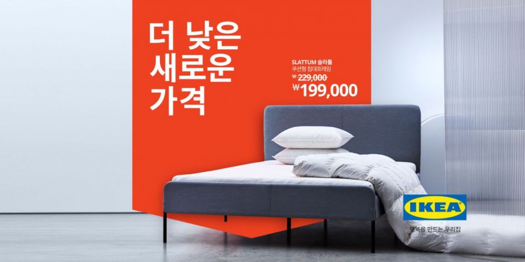 매년 새로운 카탈로그 출시와 함께 선보여온 '더 낮은 새로운 가격'은 52개 제품에 새롭게 적용한다. 올해는 ▲슬라툼(SLATTUM) 쿠션형 침대 프레임(22만9900원→19만9900원) ▲네스나(NESNA) 침대 협탁(1만9900원→1만4900원) ▲노르드뮈라(NORDMYRA) 테이블(19만9000원→14만9000원) ▲빌드코른(VILDKORN) 높은 베개(9900원→7900원) 등 홈퍼니싱 제품들이 약 20% 낮은 가격으로 제공된다.