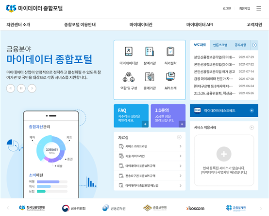 마이데이터 종합포털 메인화면. 사진=한국신용정보원