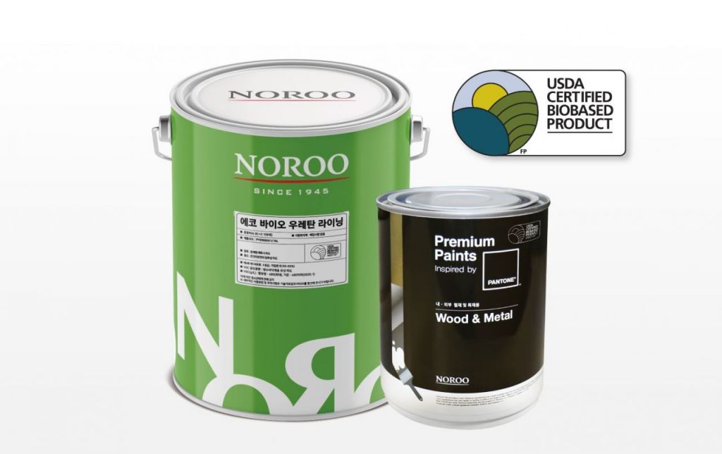 노루페인트 USDA 인증 획득 바이오페인트 2종. ‘팬톤우드&메탈’, ‘에코 바이오 우레탄 라이닝’ [사진제공=노루페인트]
