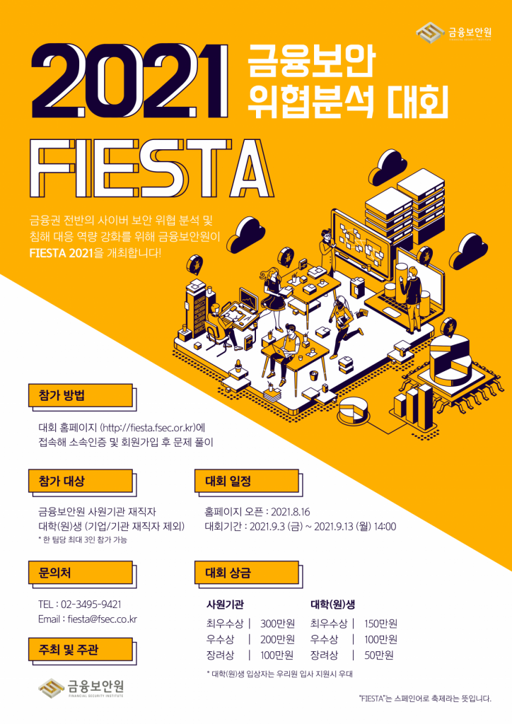 [아시아경제 송승섭 기자]금융보안원은 금융권 사이버 침해 위협 분석 대회(FIESTA 2021)을 개최한다고 17일 밝혔다.