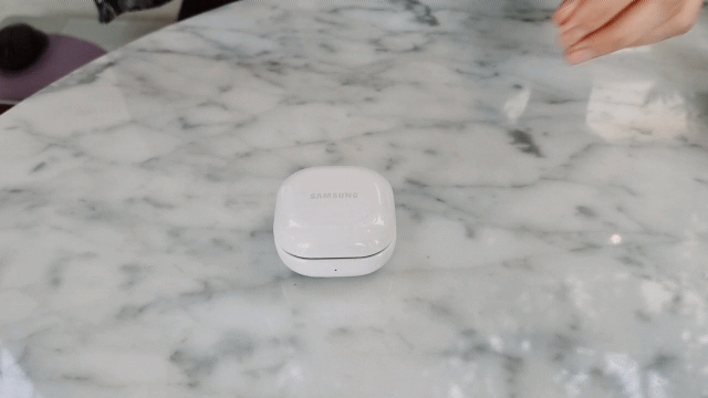 버즈2 실물을 보면 두 개 이어버드의 통통한 외관이 먼저 눈에 띈다. 지난 1월 출시된 프리미엄 라인 '갤럭시 버즈 프로'와 비교했을 때 이어팁과 연결되는 부분이 잘록하다. 도톰한 부피감으로 귀에 빈틈 없이 꽉 차는 버즈 프로보다 개인적으로는 버즈2가 더 착용감이 좋았다. 그라파이트 색상은 회색과 검은색이 섞인 듯한 오묘한 색상으로 얼굴이 잘 보이는 버즈 프로와 달리 반투명했다.