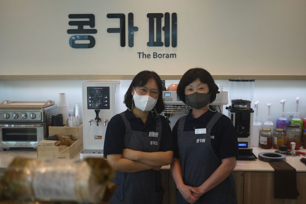 콩카페는 보건복지부 주관 노인일자리사업 수행기관인 세종시니어클럽에서 운영하는 시장형 일자리 사업 중 하나다. 2018년 첫 개점한 콩카페 반응이 좋아 올해초 2호점을 열면서 10명의 신규 바리스타를 채용했다. 모두 베이비부머 세대 여성들이다. 하루 4시간씩, 일주일에 이틀 근무한다. 보수는 시급 9000원.
