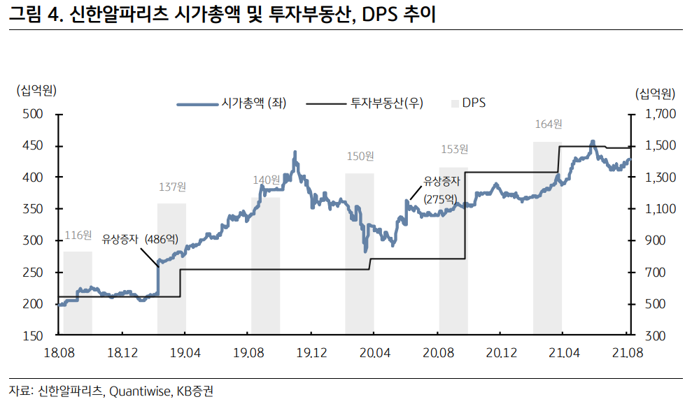 한국 상장리츠는 신규자산을 취득하면서 본격적인 대형화에 나서고 있다는 평가다. 2018년 8월 상장한 신한알파리츠의 경우 2번의 추가적인 유상증자와 LTV비율을 활용한 대출증가 등을 통해서 자산 수를 6개까지 증가시켰다. 그는 "신규자산이 지속적으로 편입되는 가운데 주당배당금 역시 증가하고 있어 리츠의 대형화가 주주의 편익으로 이어짐을 보여주고 있다"고 말했다.
