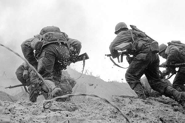 1950년 9월 낙동강 방어선 전투에서 참호 밖으로 나와 진격하는 국군 병사들의 모습[이미지출처= 국가기록원 홈페이지]