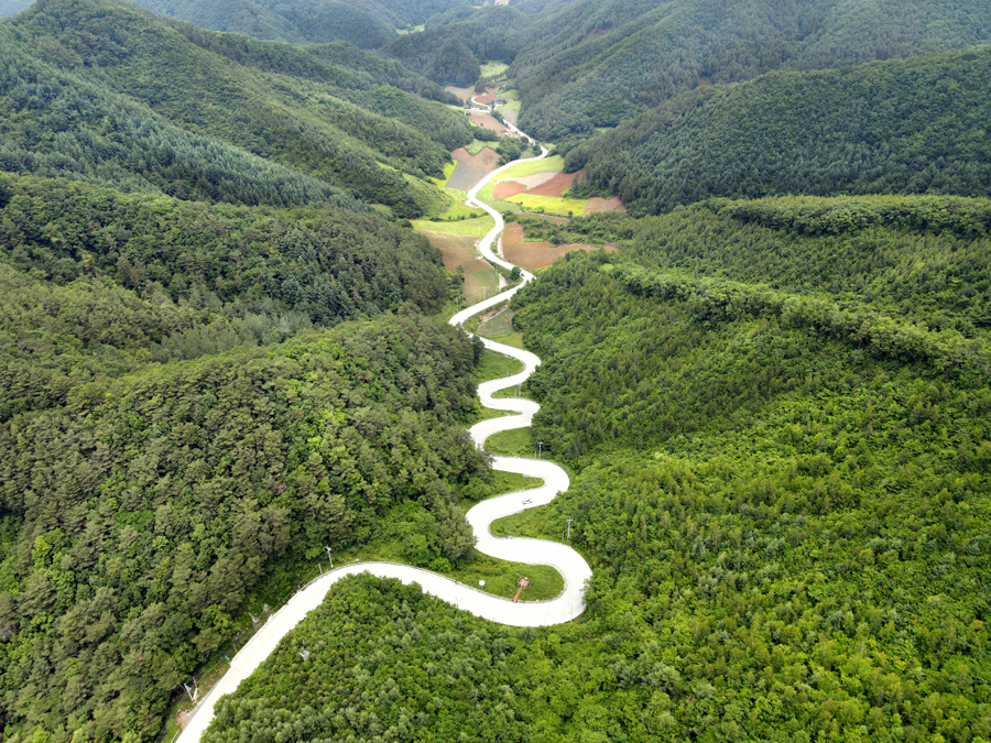 전망대에 서면 한없이 구불거리며 북동리 마을로 이어지는 길이 신기하기도 하고 아찔하기도 하다. 북동리는 너무나 깊어서 6,25 한국전쟁도 모르고 지나갔다고 하는 오지중의 오지였다. 현재는 문치재길이 롱보도 최고의 코스로 입소문이 나면서 보드매니아 들이 찾고 있다.
