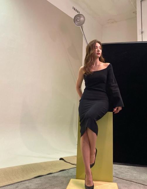 신세경은 최근 자신의 인스타그램에 광고 촬영 현장 사진을 게재했다. 공개된 사진 속 그는 검은색 오프숄더 드레스를 입고 우아한 몸매를 자랑하고 있다.