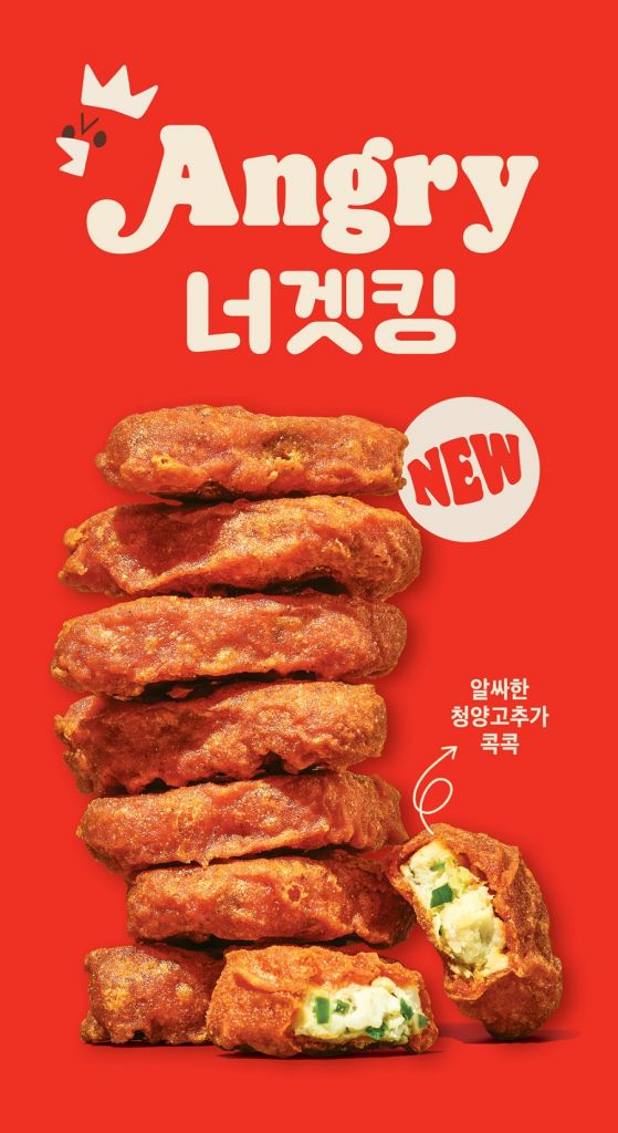 100% 국내산 치킨으로 만든 ‘너겟킹’은 겉은 바삭하고 속은 쫄깃한 식감으로 많은 사랑을 받는 버거킹의 인기 사이드 메뉴다. 새롭게 선보이는 ‘앵그리 너겟킹’은 알싸한 청양고추를 추가해 한국인이 사랑하는 매운 맛을 더한 것이 특징이다.
