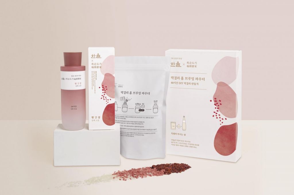 이번 협업을 통해 한율의 대표 스킨인 빨간쌀 진액 스킨과 복순도가의 손막걸리에는 '발효로 점점 붉게 물들어가는 빨간쌀'을 모티프로 한 일러스트 디자인을 각각 적용했으며 한정 수량으로 선보인다.