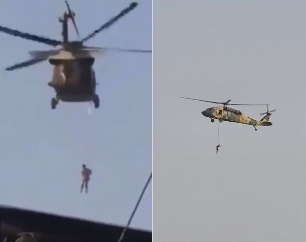 해당 영상에서는 다목적 군용 헬기인 UH-60 블랙호크가 한 남성을 매달고 상공을 날고 있다. 누리꾼들은 해당 남성이 아프간인일 것으로 추측하며 "탈레반 조직원들의 스스로의 세를 과시하는 방법 중 하나"라고 주장했다. 다만 매달린 남성의 신원에 대해서는 현재까지 밝혀지지 않았다.