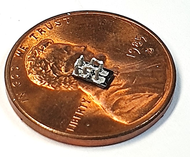 직경이 약 1.9mm인 1센트 동전 위에 올려진 초소형 열전 모듈