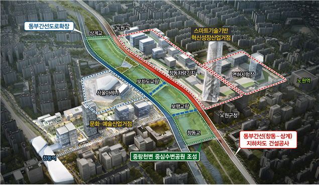 이정화 서울시 도시기반시설본부장은 “이번에 구축되는 인프라는 서울 동북부의 자족기반을 확보하고 일자리를 창출하기 위한 창동·상계 신경제중심지의 다양한 핵심사업을 연결하는 가교역할을 할 것”이라며 “도로가 있던 자리를 중랑천과 연결되는 수변문화공원으로 조성함으로써 중랑천 중심의 동북권 발전을 견인할 수 있을 것으로 기대한다”고 말했다.