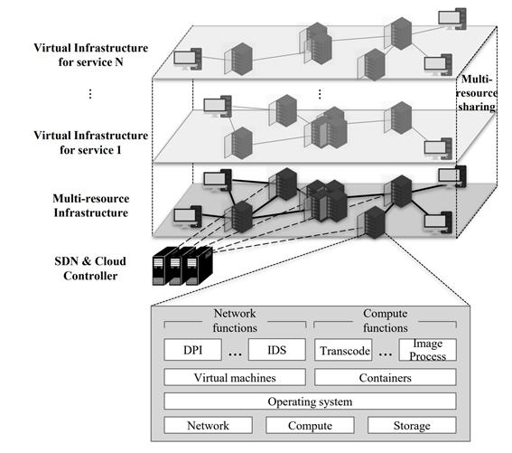 위의 그림은 네트워크 함수와 컴퓨팅 함수를 다양하게 사용하는 다양한 서비스와 EKD 서비스가 가상 인프라스트럭쳐에 어떻게 임베딩(Embedding) 되는가를 설명하고 있다.